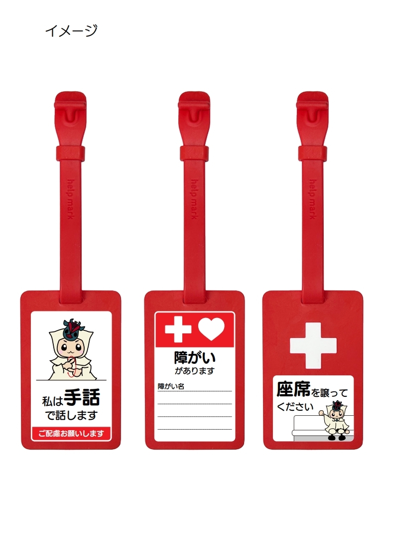 お持ちのヘルプマークに貼って使っていただくことができます。