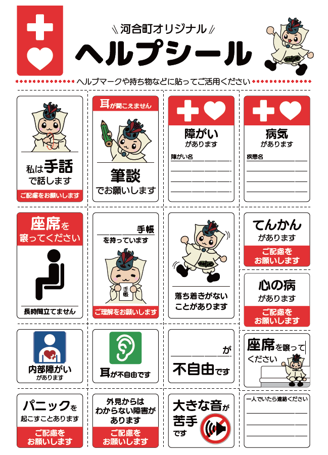 「ヘルプシール」は、周囲の方々に援助や配慮してほしいことをスムーズに伝えることができるように作成しました。