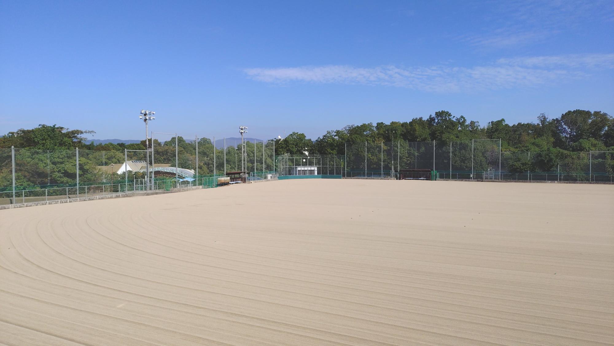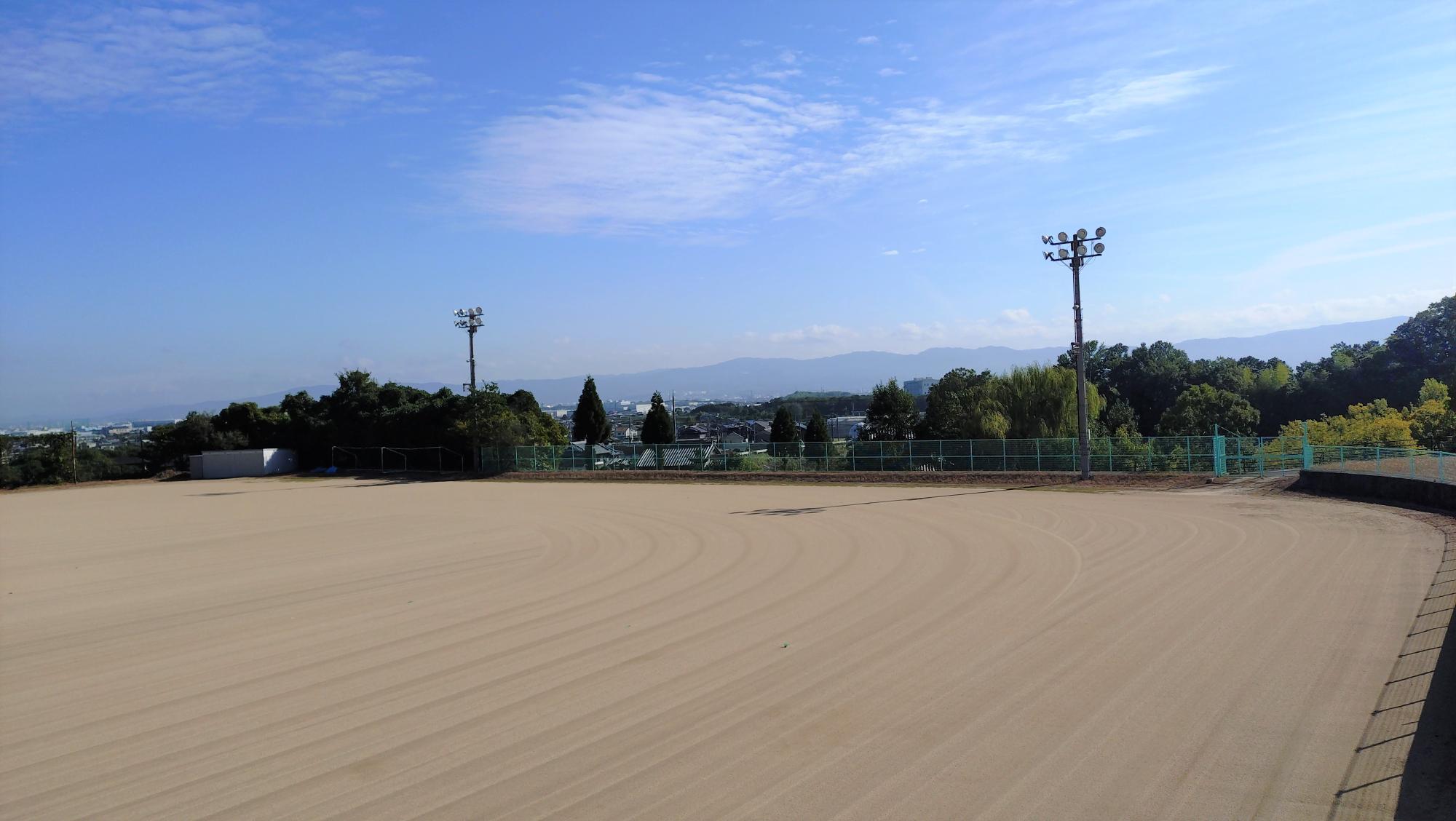 人工芝コート (写真内の右側 が河合町用、左側は上牧町管理分)
